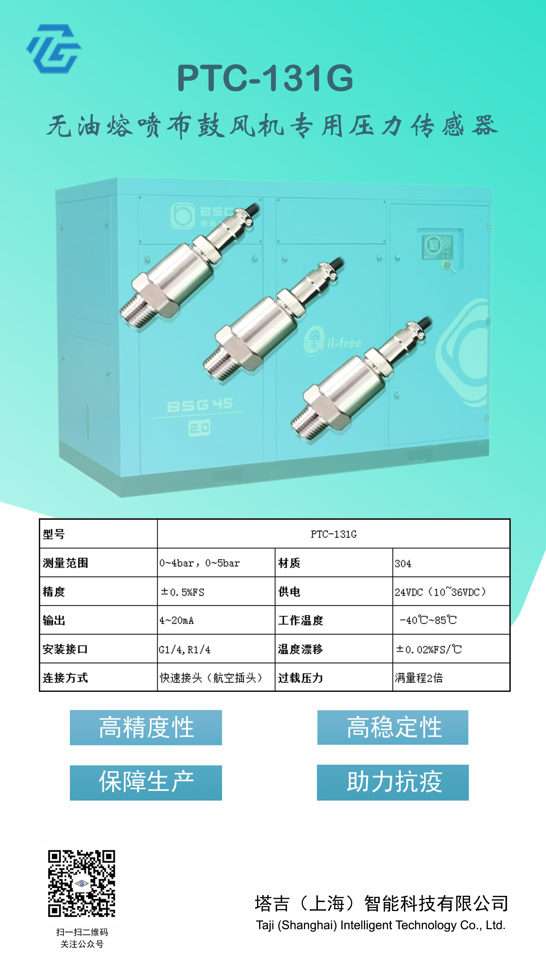 無油溶噴布鼓風(fēng)機(jī)專用壓力傳感器上市